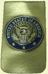 | In addition to our US Seal pin and hiking medallion we also offer cuff links, a money clip, tie bar (not pictured) and a 7/8ths inch key chain (not pictured). |